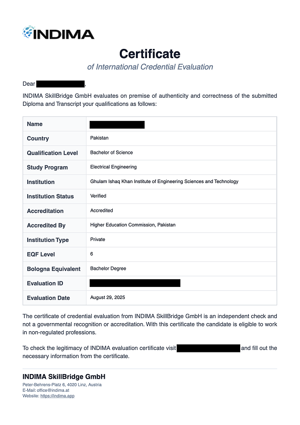 Download your comprehensive report or certificate with European qualification equivalency, including EQF level mapping and detailed analysis for employers and institutions.